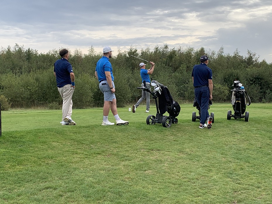 The top order looked in the mood to make it happen, but when the top match (literally) ran into the back of a visiting party on the front nine, things became a bit more pedestrian. Uzzell and Brettell (pictured below) joined forces to make a fourball, as did Raybould and Duck in matches 3 and 4. Not ideal, but the same for both sides.