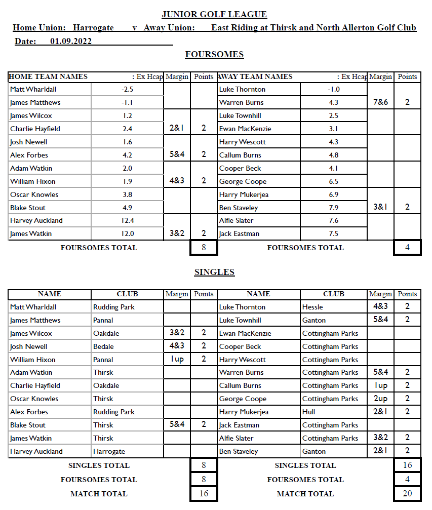 As always, well done to everyone involved. Thank you to all the volunteers and parents who help make these events happen. Thank you for your hospitality and for being wonderful hosts Thirsk and North Allerton Golf Club. It was greatly appreciated.