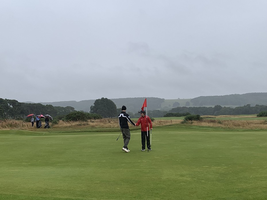 So Hull had the two wins needed for the title, but Pepper and Anderson were producing a mini classic in the middle match which they played out in front of a growing group of spectators. Alfred found triple trouble at the 16th with visits to the long grass, trees and then a gorse bush to go dormie two down. He won the 17th after his tee shot came up just short of the green and George found the front left bunker. A half in bogey down the last meant that George just held on to bring Hull home 3-0.