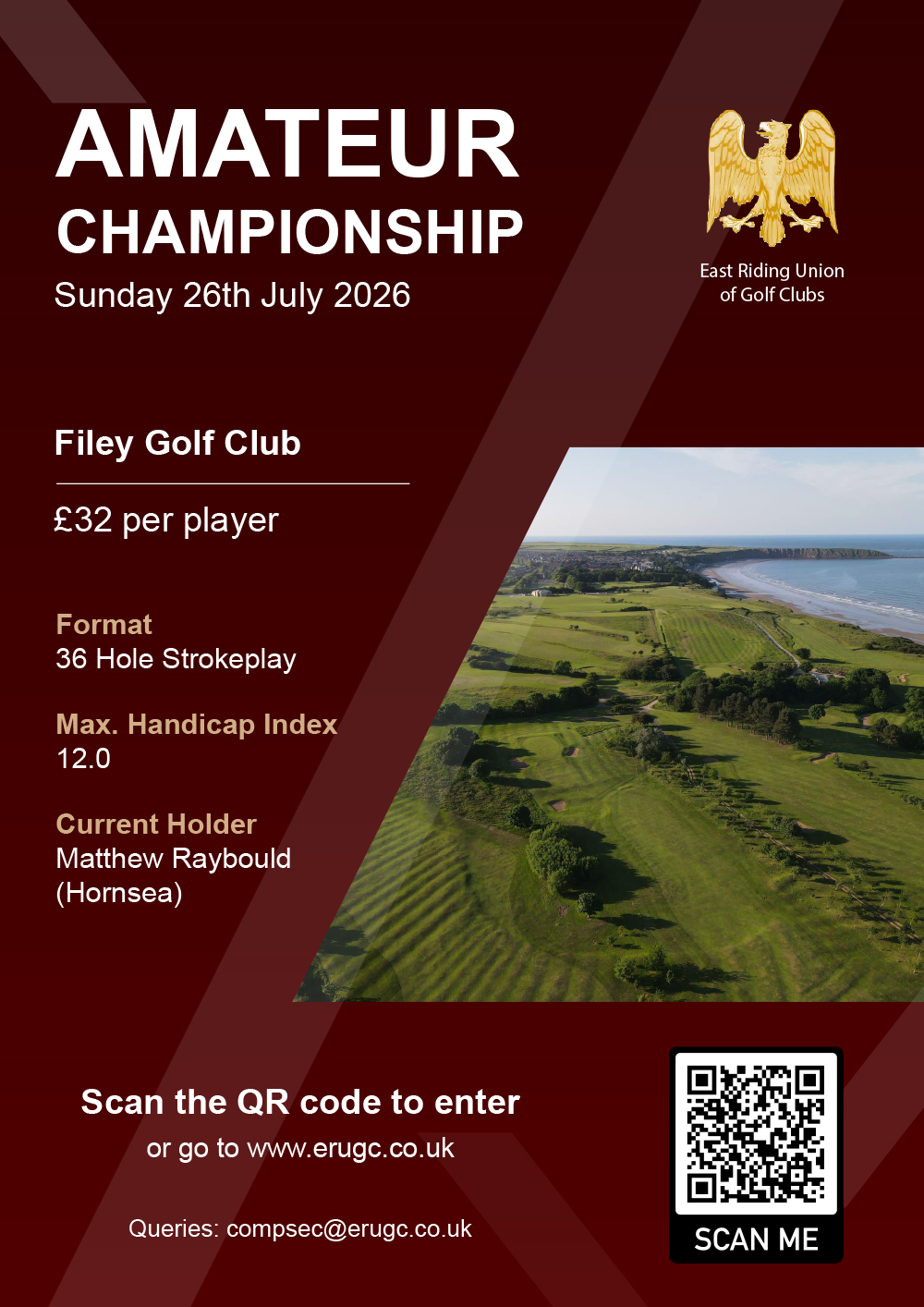 The Amateur Championship will be held on Sunday 26th July 2026 at Filey Golf Club