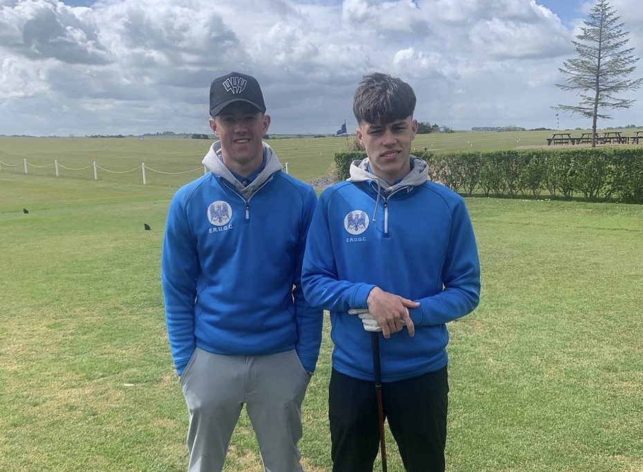 In match 5 Alfie Dacey and Luca Boyer never looked in trouble and won 6&5 and the ever-reliable ‘Tail End Charlies’ from Cave Castle delivered another 2 points – Tom Adcock and Huxley Sawyer (pictured below) winning 5&4. The East Riding’s strength in depth was the key to a Foursomes win in the morning session. The East Riding led 7-5 at lunch.