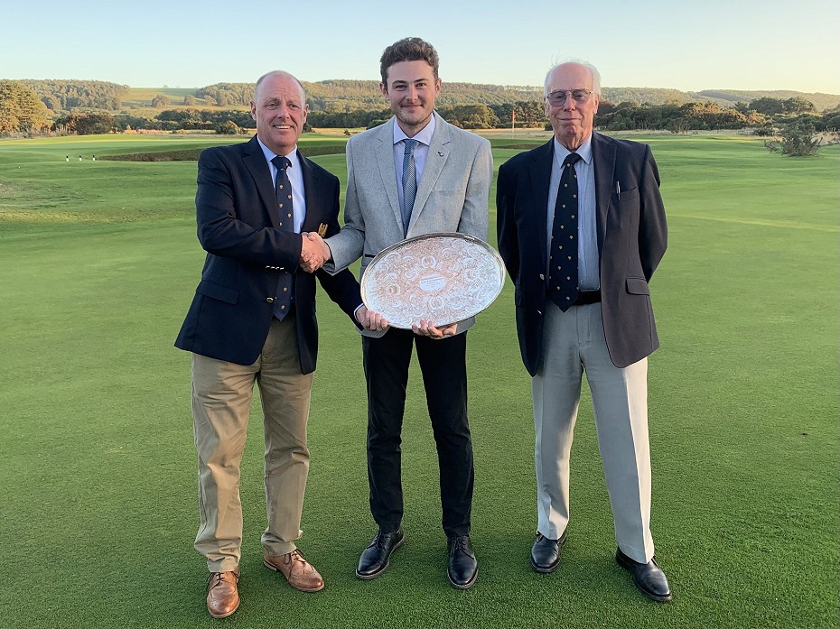 2020-21 East Riding President John Chambers (right) powered through the field with a stellar back nine to take the prestigious Rex Warren Medal played at its ceremonial home Driffield Golf Club.