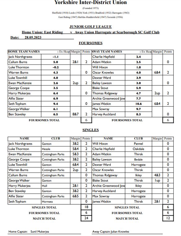 Thanks, as always, to all the volunteers, helpers and parents who help make these events happen. Again, thank you to our hosts today, Scarborough South Cliff Golf Club for your hospitality. Your support is always greatly appreciated. So until July, enjoy the great British summer and we will see you all soon.
