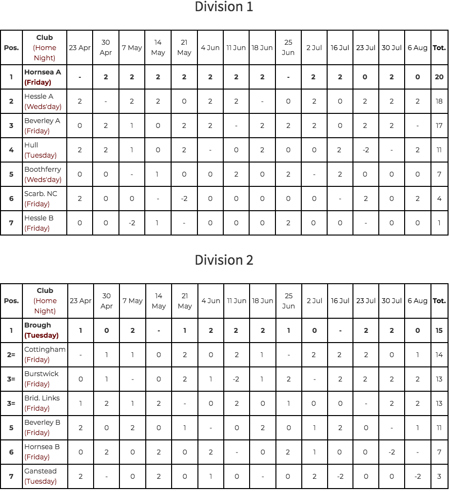 Congratulations to Hornsea and Brough on winning their Scratch League Divisions for 2018. Great performances from both clubs to top the tables!